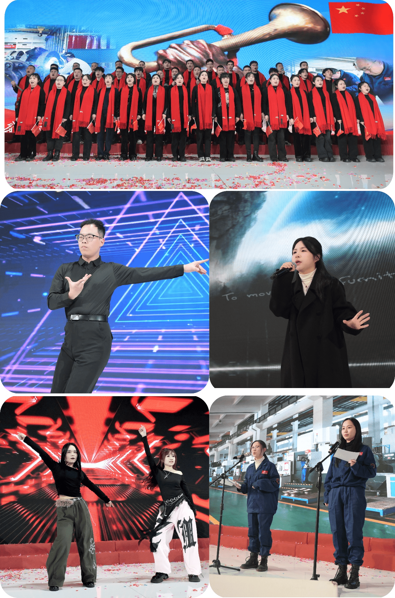 随后,各中心员工带来丰富多彩的文艺节目:大合唱《我们走在大路上》、独唱《一生的爱》、国标舞《双舞熠辉》、相声《外贸助理二三事》、电吹管演奏《思念陪着鸿雁飞》等,展现了伯特利人多才多艺、昂扬向上的精神风貌。