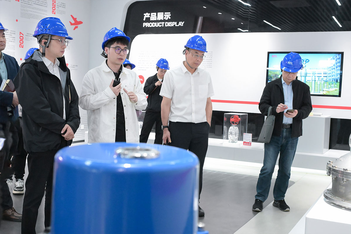 调研团一行深入公司生产与管理核心区域,重点考察了数智展厅、驾驶舱及生产车间。在展厅,调研团了解了公司发展历程及数字工厂建设成果,伯特利作为浙江省阀门行业首家数字工厂,在超低温阀门、临氢阀等细分领域居领先地位。在驾驶舱,调研团通过数据大屏直观了解了生产管理、能耗监控及订单调度系统。生产车间内,公司自主研发的“成品码”系统实现产品全生命周期追溯,获得调研团高度评价。调研团同时对车间高效的生产管理及6S现场管理给予充分肯定。